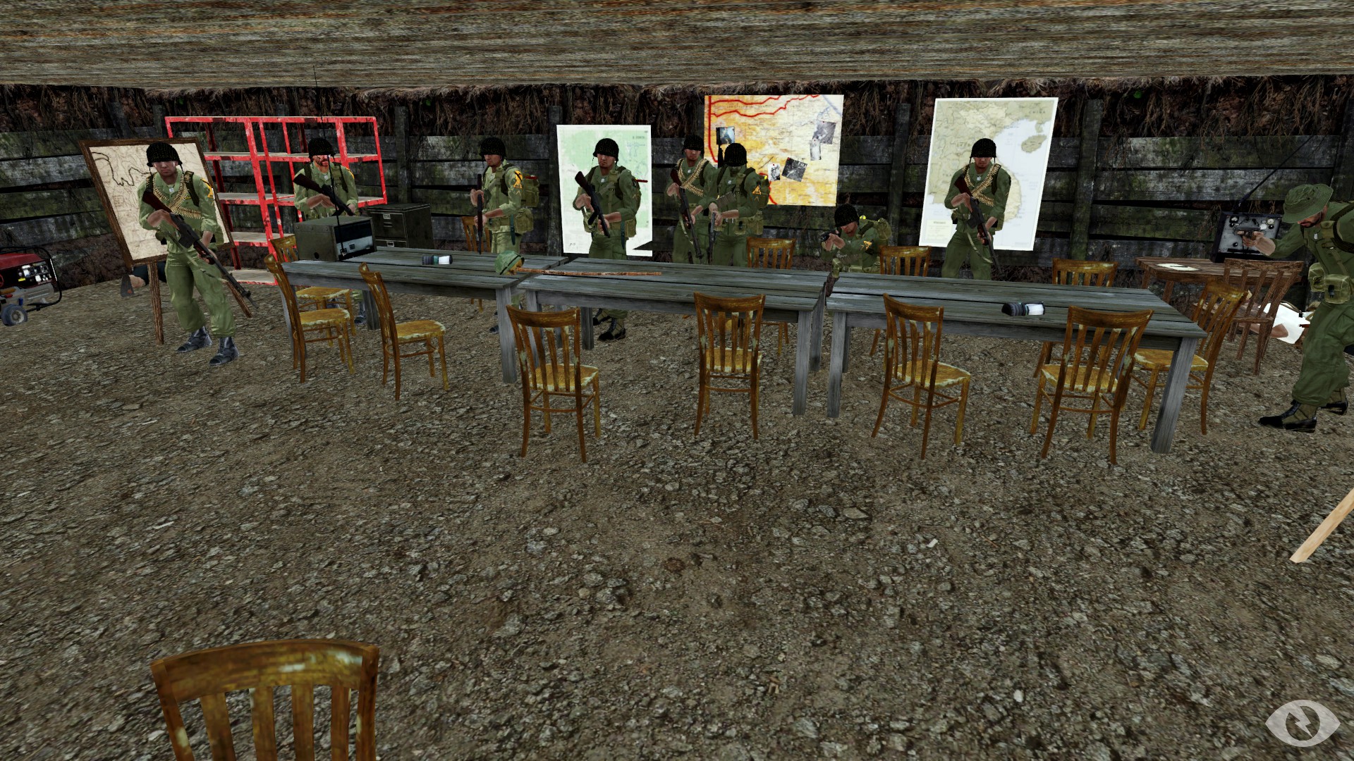 Equipement de base : 5* fumis bleues / 5* grenades a main / 2 grenades napalm / 5 * Kits de soin / jumelle et radio A/D CDS/CDG/CDE
