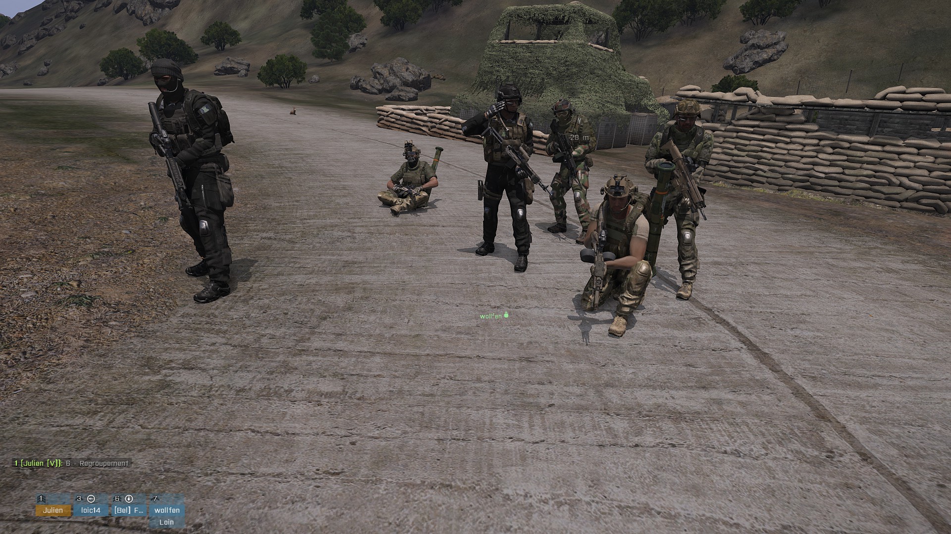 Si si, il est derrière le groupe, au milieu de la route, à gauche du bunker :lol: