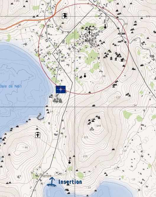 20h plus tard, nos forces sont réduites au strict minimum, faut de pouvoir envoyer des renforts à temps, notre frégate a été déroutée de sa mission et les forces présentes à bord seront débarquées en urgence au sud de Neri pour rejoindre le dernier point tenu par nos hommes.