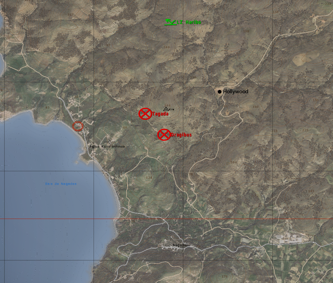Le haut dirigeant takistanais devrait se trouver à Agios Konstantinos ou à Negades. Votre mission est donc de le débusquer et l'abattre, lui et toute sa garde rapprochée.