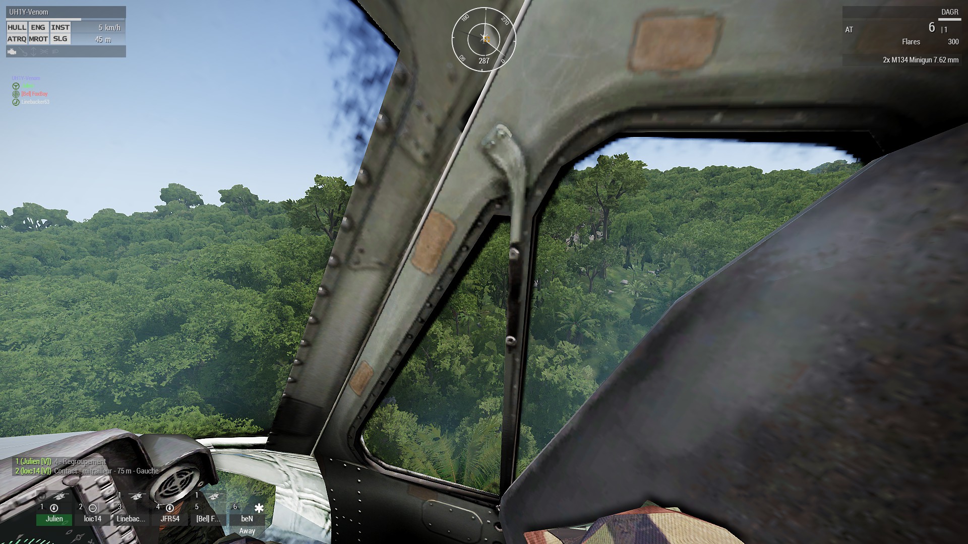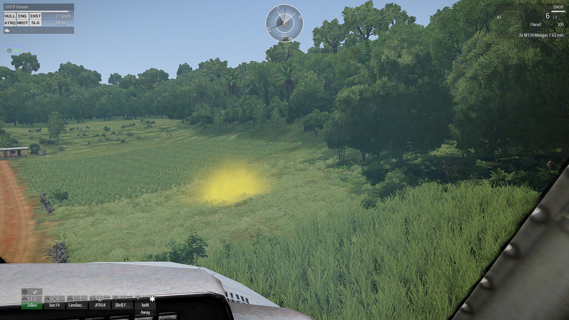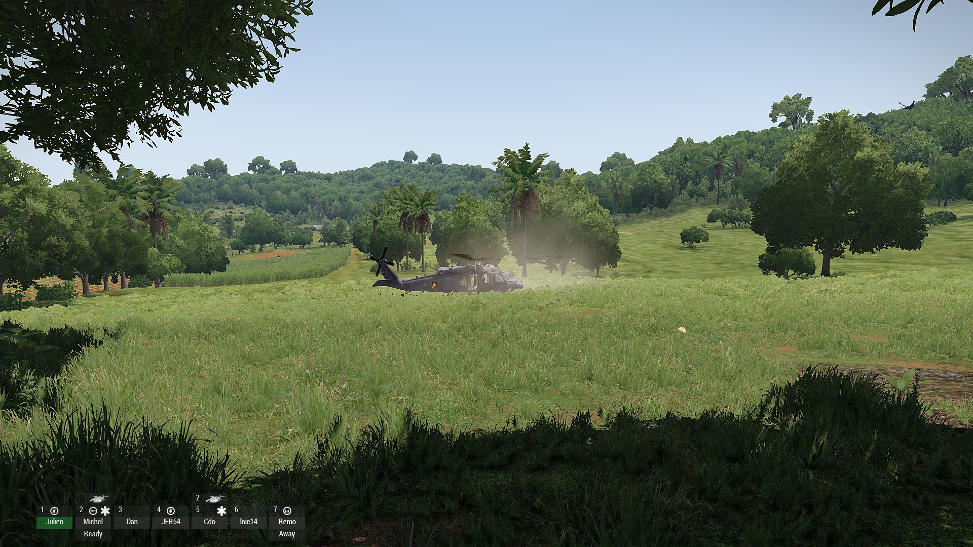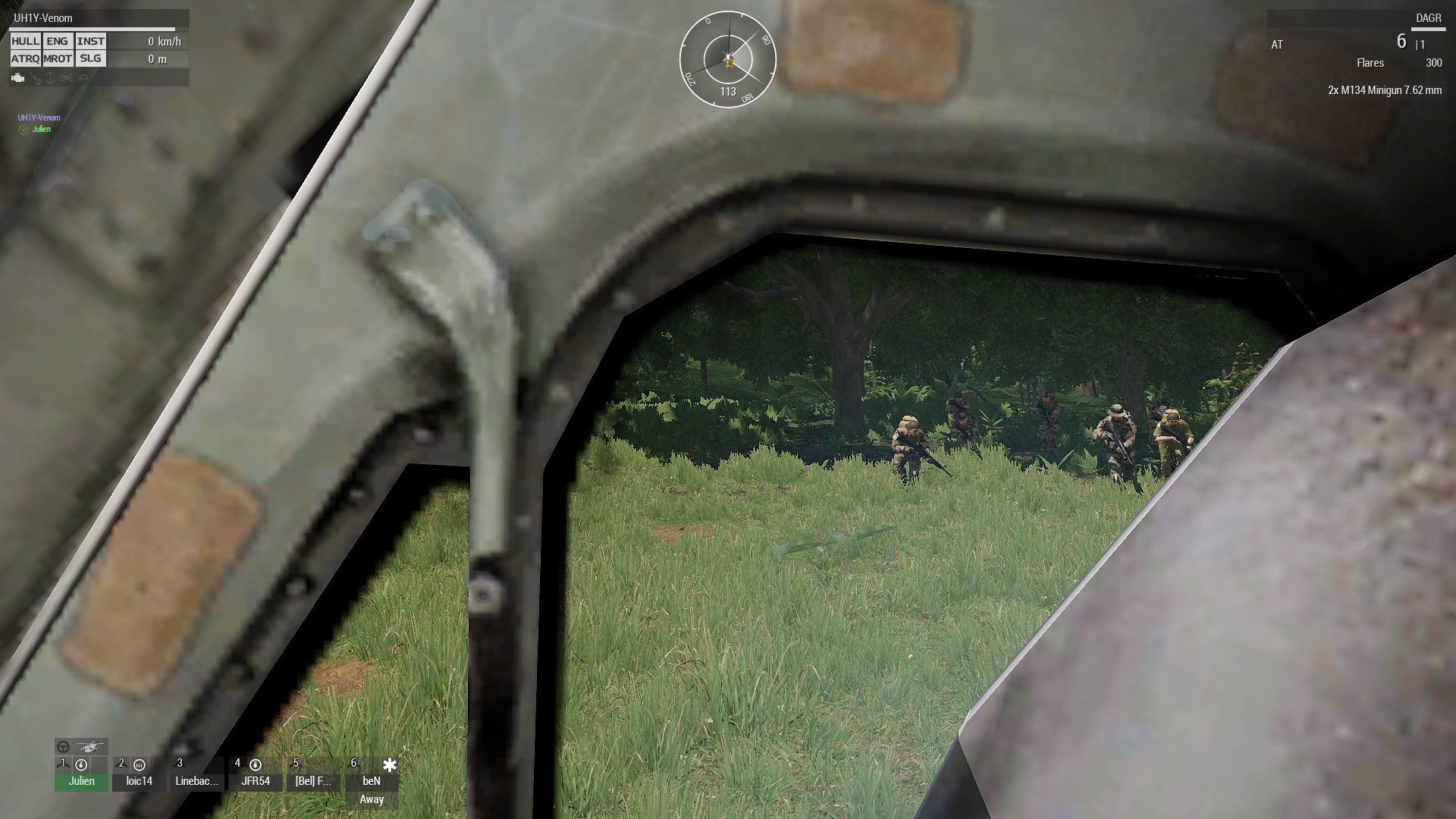 On a utilisé un UH-1 Huey pour l'appui, qui en plus des canons latéraux possède 2 nacelles de 12 roquettes (12 AT & 12HE)