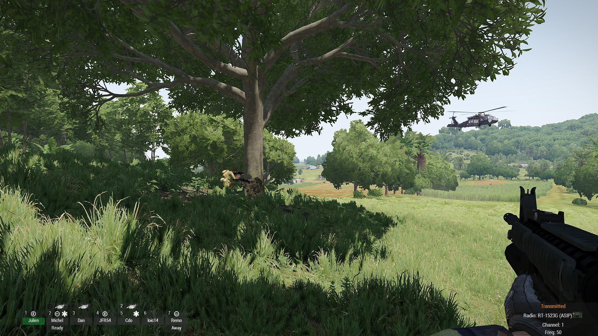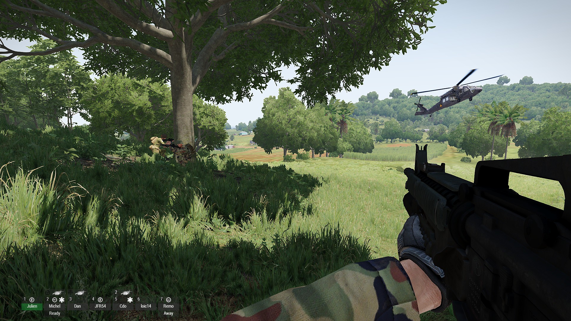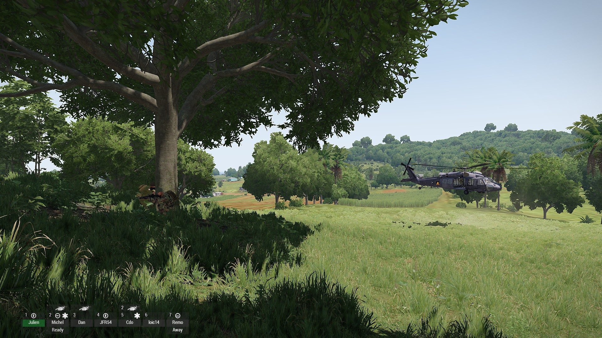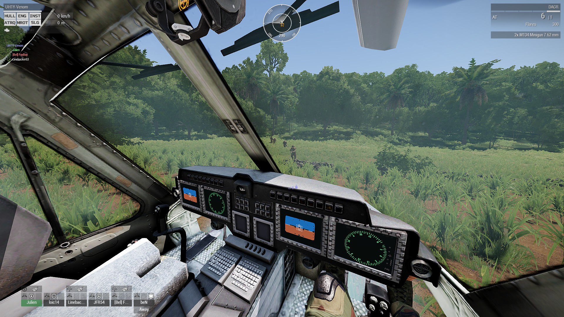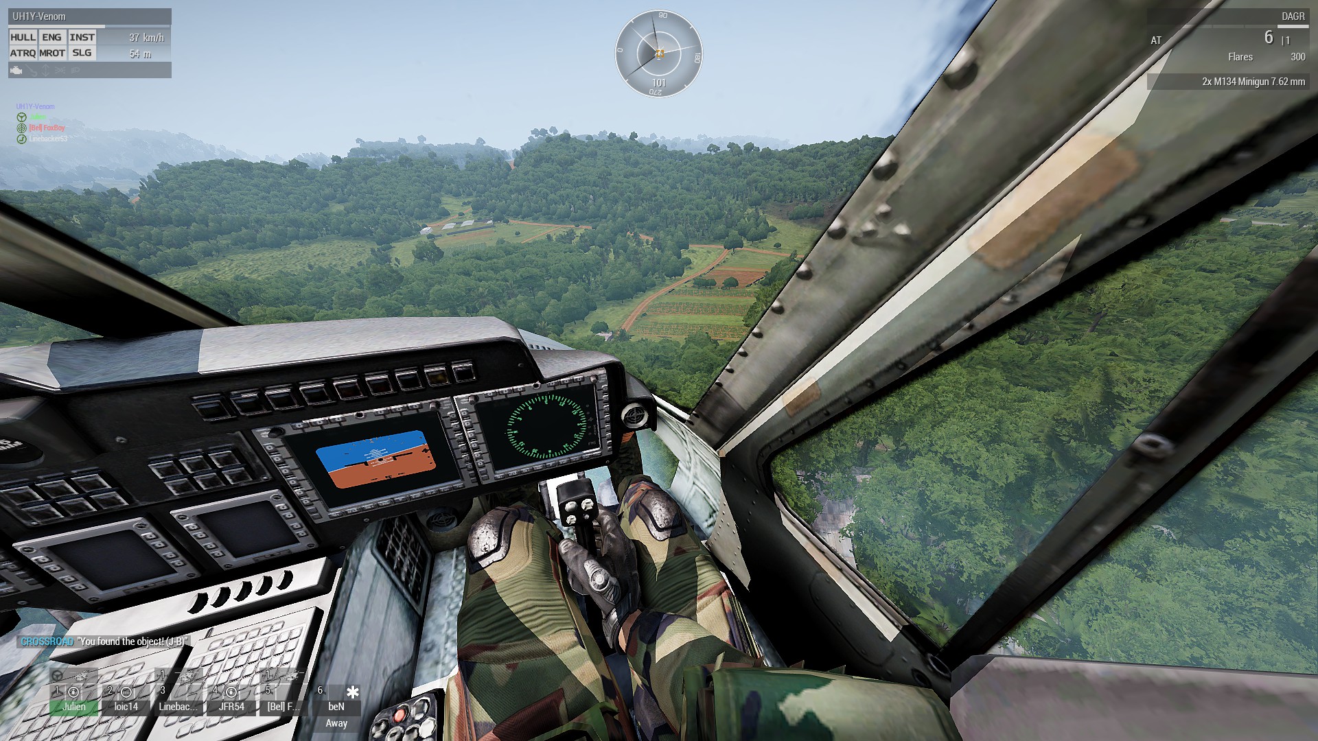 On a utilisé un UH-1 Huey pour l'appui, qui en plus des canons latéraux possède 2 nacelles de 12 roquettes (12 AT & 12HE)