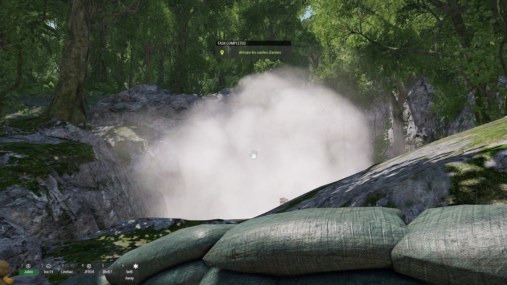 On ne voit pas l'ennemi, donc on tire sur les fumis rouge déployés par le groupe d'assaut.